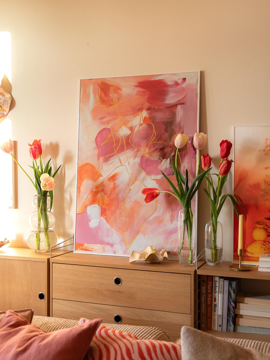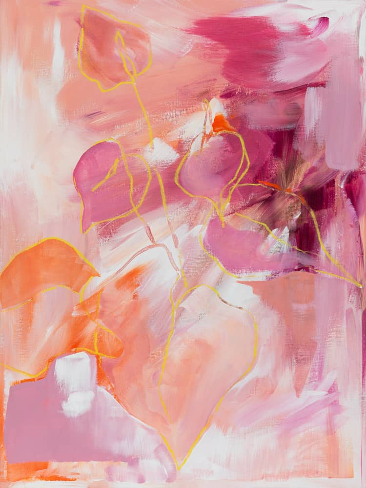 Besonders fasziniert sie das Licht kurz vor der Dämmerung: diese goldenen, rötlichen, violetten Nuancen, wenn der Tag langsam leiser wird. Dieses warme Leuchten findet sich in vielen ihrer Arbeiten wieder. Ihre Farbwelten wirken wie eingefangene Sonnenuntergänge – weich, atmosphärisch, lebendig.